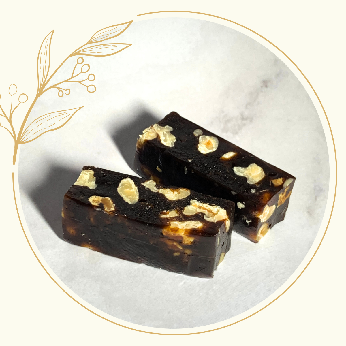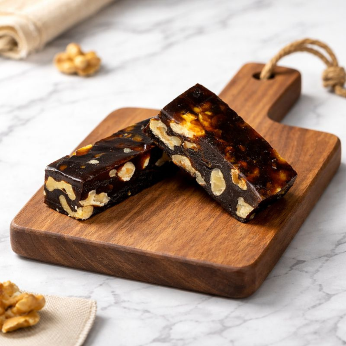 【南棗核桃糕】口感甜而不膩,每一口都能品嚐到棗香、麥芽糖香與核桃堅果香的和諧交融。無論是搭配熱茶細細品味,或作為年節分享的心意點心,都能讓人感受到傳統糕點所蘊含的溫度與細緻。